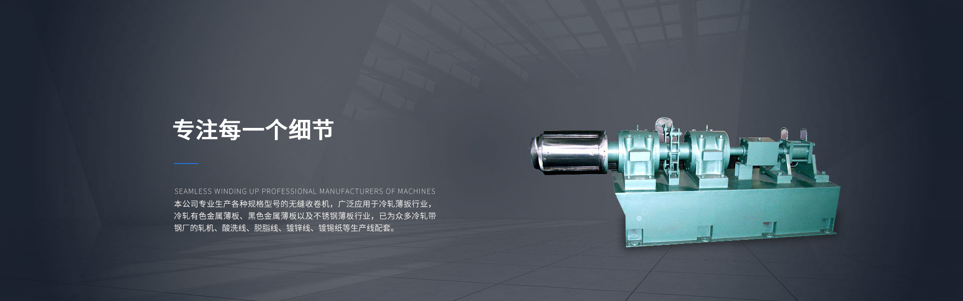 本公司專(zhuān)業(yè)生產(chǎn)各種規(guī)格型號(hào)的無(wú)縫隙收卷機(jī)敲山震虎,廣泛應(yīng)用于冷軋薄板行業(yè),冷軋有色金屬薄板、黑色金屬薄板以及不銹鋼薄板行業(yè),已為眾多冷軋帶鋼廠(chǎng)的軋機(jī)铁石心肠、酸洗線(xiàn)、脫脂線(xiàn)、鍍鋅線(xiàn)、鍍錫線(xiàn)等生產(chǎn)線(xiàn)配套...